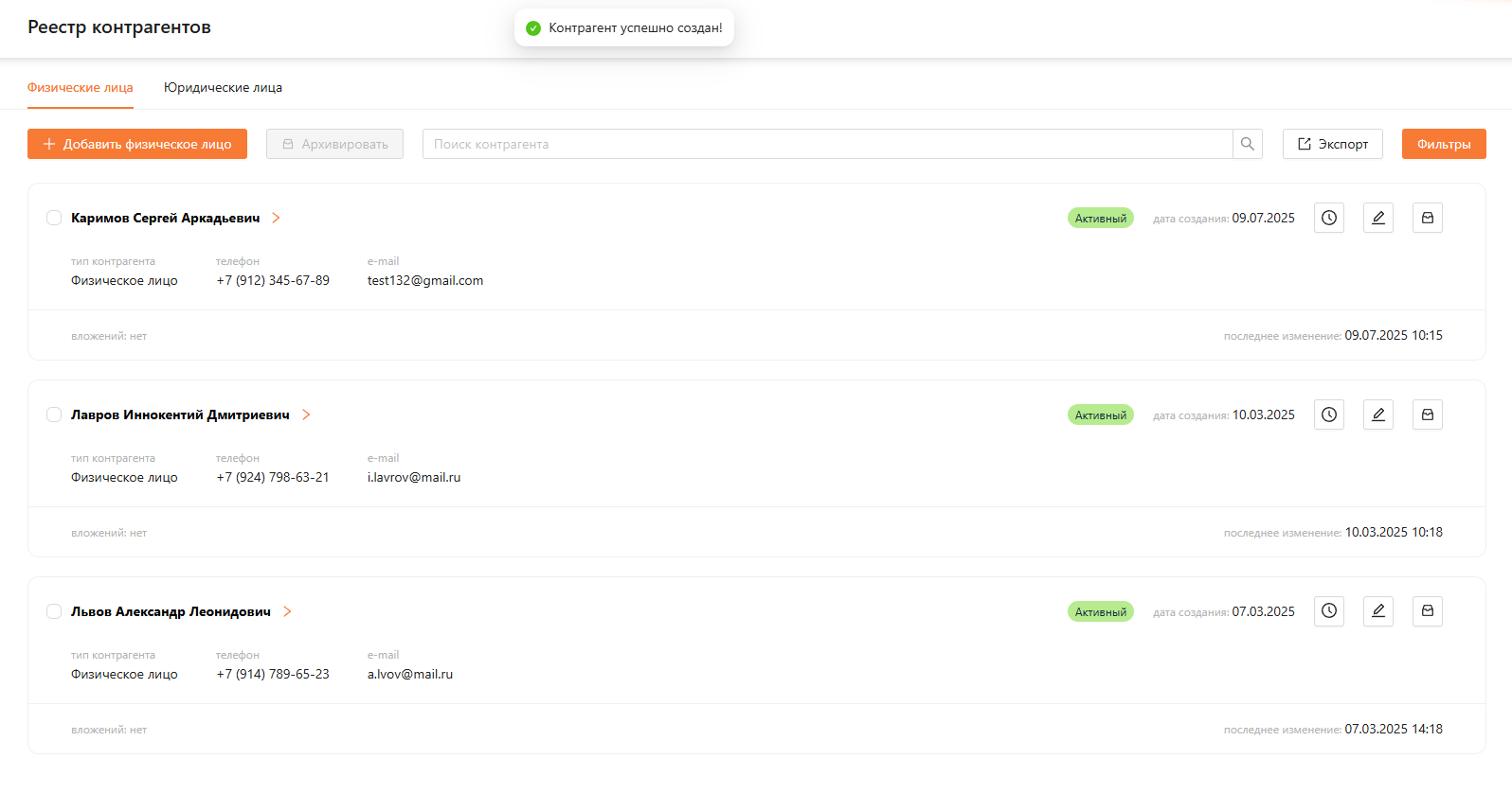 Контрагент (ФЛ) успешно создан (см. рисунок 8).