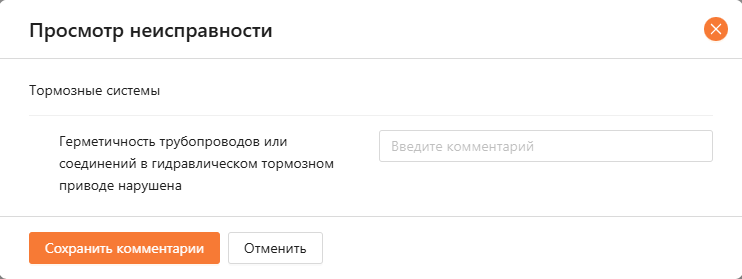 Для того чтобы указать комментарий для неисправностей, указанных во время приемки, нужно кликнуть на неисправность. В открывшемся окне (см. рисунок 21) указать комментарий.