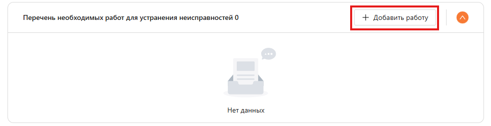 Диагност может указать перечень необходимых работ для устранения неисправностей, нажав на кнопку “Добавить работу” (см. рисунок. 25). Откроется модальное окно (см. рисунок 26), где можно указать, какие работы нужно провести, чтобы устранить все найденные неисправности.