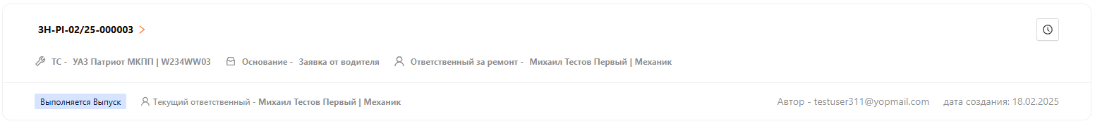 Для выполнения этапа “Выпуск” необходимо зайти под пользователем, который был указан ответственным за выпуск на предыдущем этапе, и открыть заказ-наряд (см. рисунок 36).