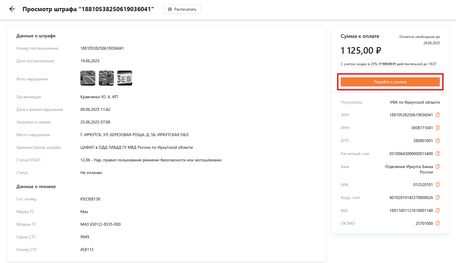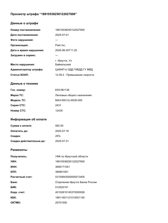 Просмотр штрафа