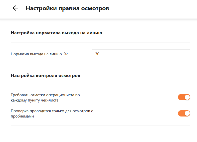 Можно настроить норматив выхода на линию в процентах, а также указать обязательность проведения контроля (см. рисунок 2).