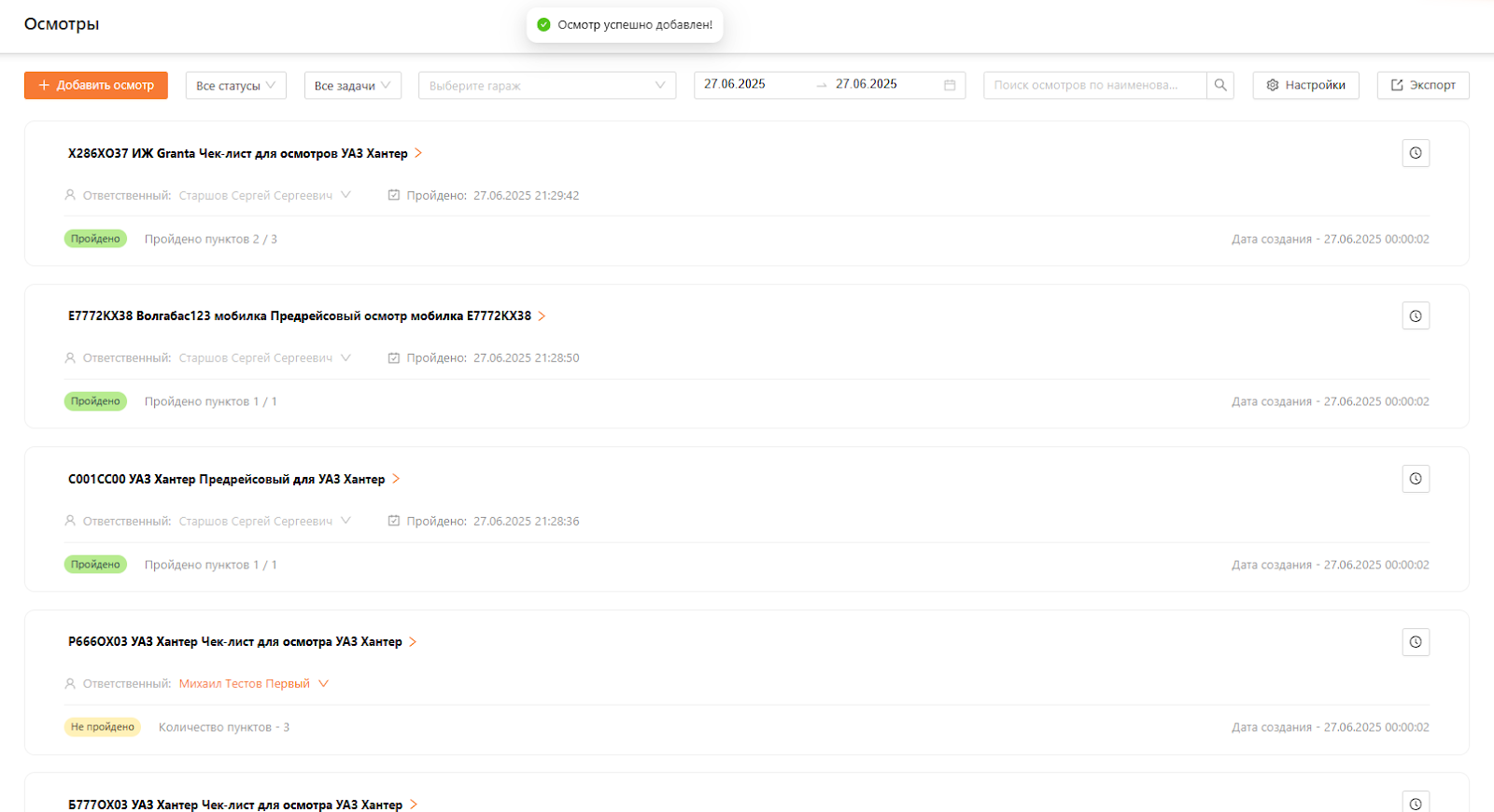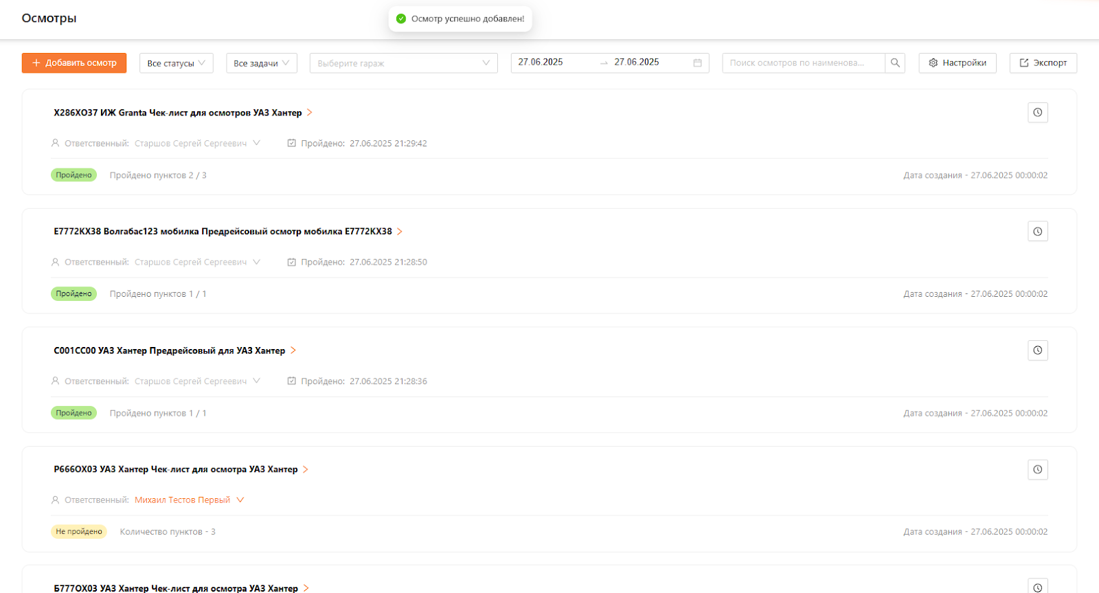 Осмотр по чек-листу успешно создан вручную (см. рисунок 30).