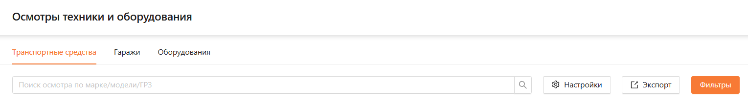 Транспортные средства: кнопка для фильтрации осмотров по ТС.