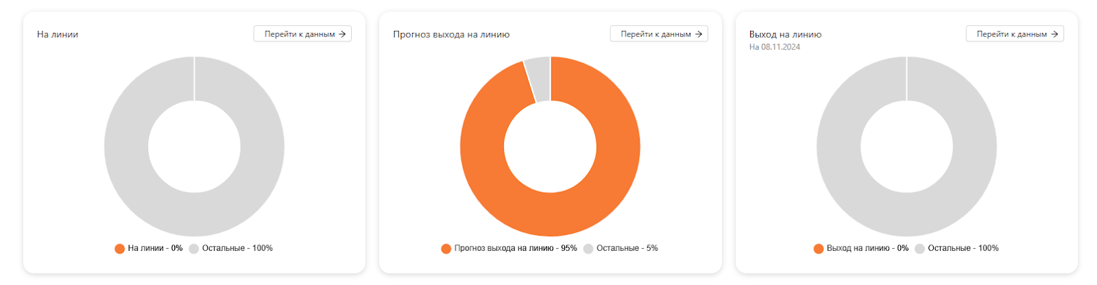 При нажатии на кнопку “Перейти к данным” во втором графике “Прогноз выхода на линию” откроется список ТС, которые по плану должны будут выйти на линию с указанием текущих статусов ТС (см. рисунок 7).