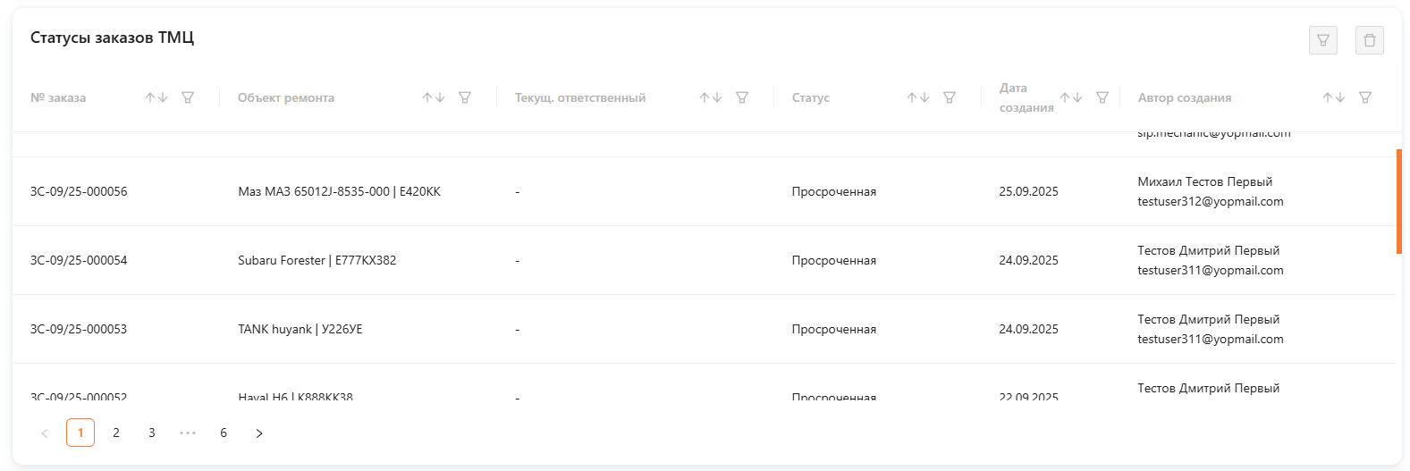 Виджет “Статусы заказ-нарядов” отображает текущие заказ-наряды, исключая выполненные и архивные статусы (см. рисунок 32). Как и на главной странице доступна фильтрация по столбцам.