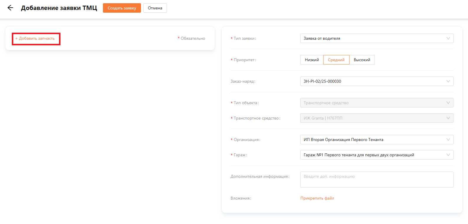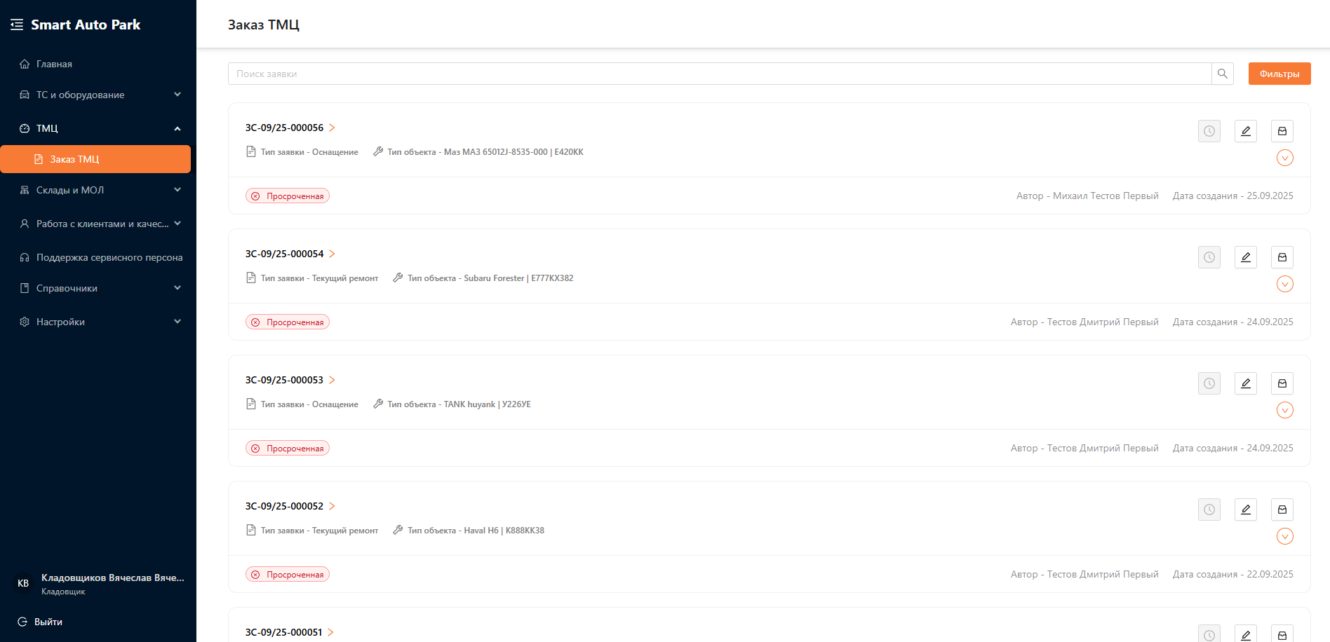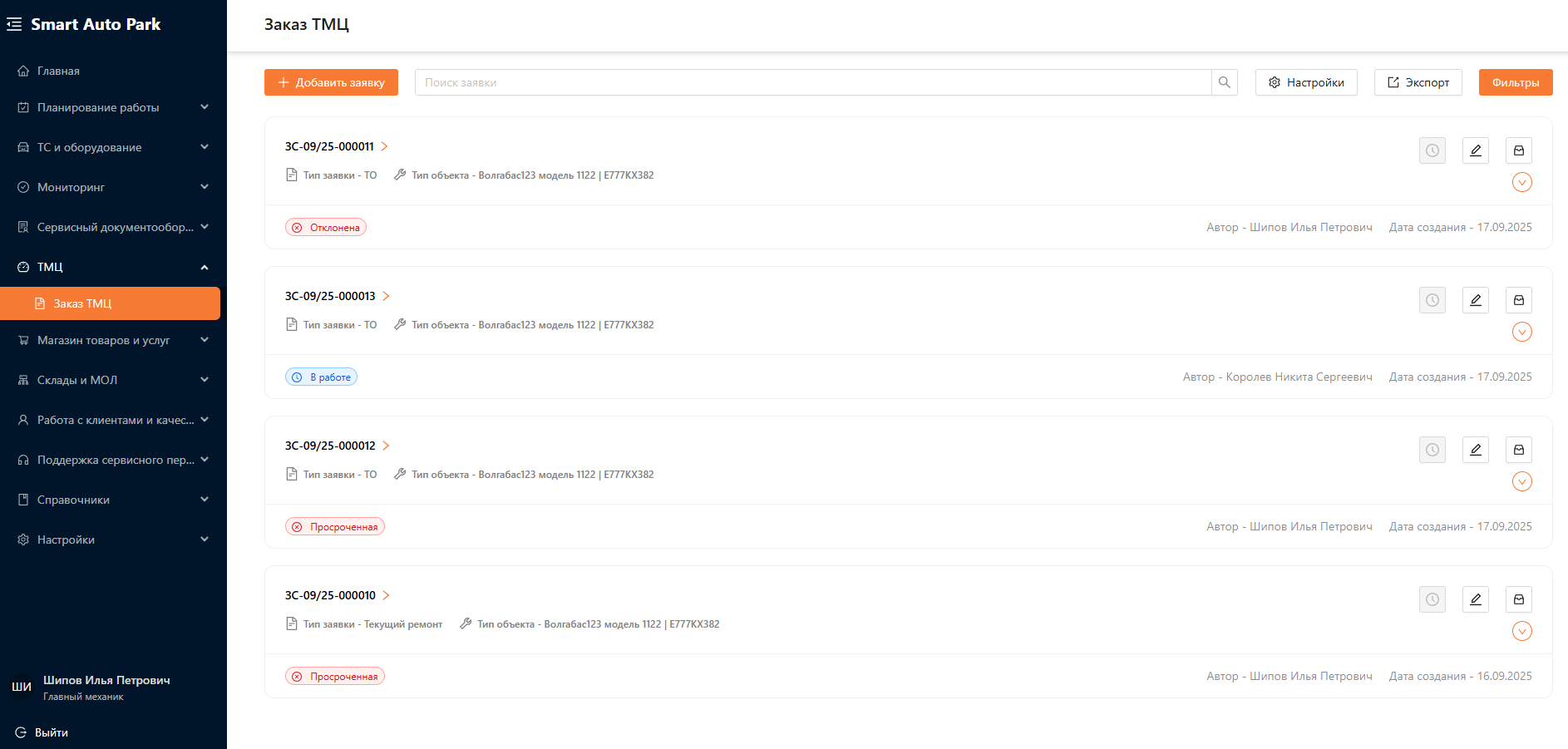 Система для управления автопарком предназначена для автоматизации и оптимизации всех аспектов эксплуатации и обслуживания транспортных средств и оборудования. Система является комплексным решением, охватывающим всю деятельность, связанную с управлением автопарка, от учета и мониторинга транспортных средств до планирования и аналитики. Одним из подразделов Системы является “Заказ ТМЦ”.