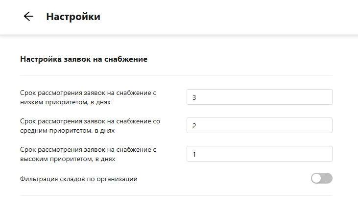 Настройки: панель для выбора срока рассмотрения, архивирования заявок и назначения ответственного (см. рисунок 5).