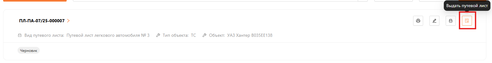 В этом статусе путевой лист можно отредактировать, архивировать или нажать на кнопку “Выдать путевой лист”.
