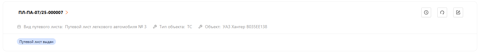 Нажмите “Выдать”. Путевой лист изменит статус на “Путевой лист выдан” (см. рисунок 12).