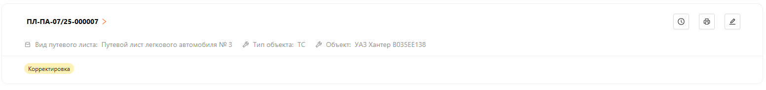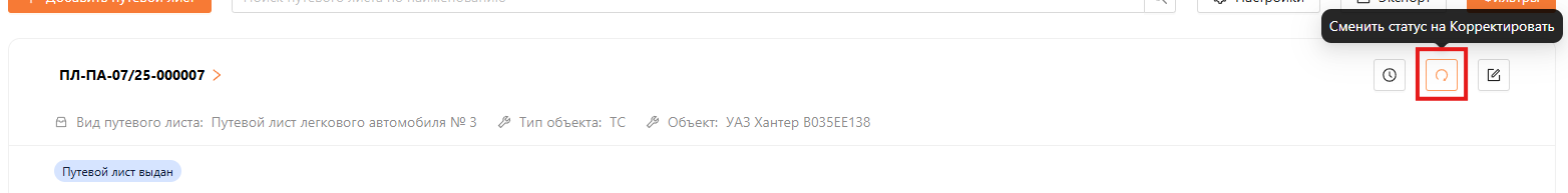 Путевой лист изменит статус на “Корректировка” (см. рисунок 15).