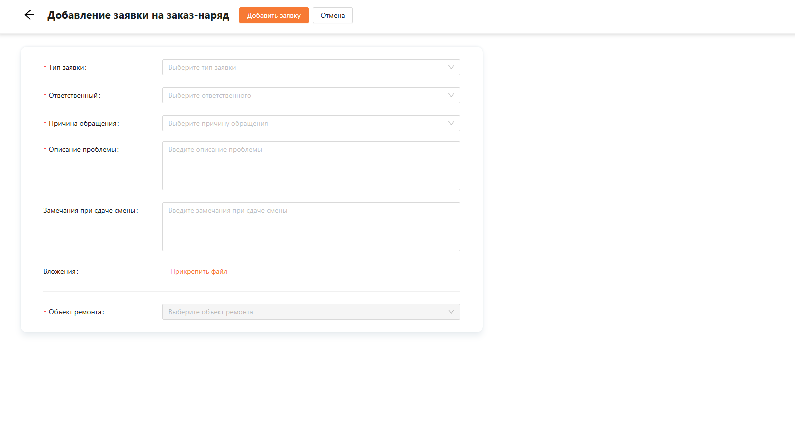 Добавление заявки